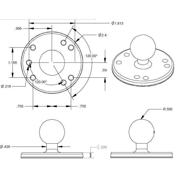 RAM Mounts Grundplatte rund – B-Kugel (1 Zoll), Plattendurchmesser 63,5 mm, AMPS Lochraster Lesen Sie mehr
