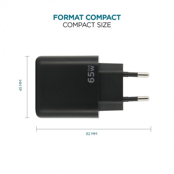 Cargador de pared rápido, UE, 2 USB-C, 1 USB-A, 65 W