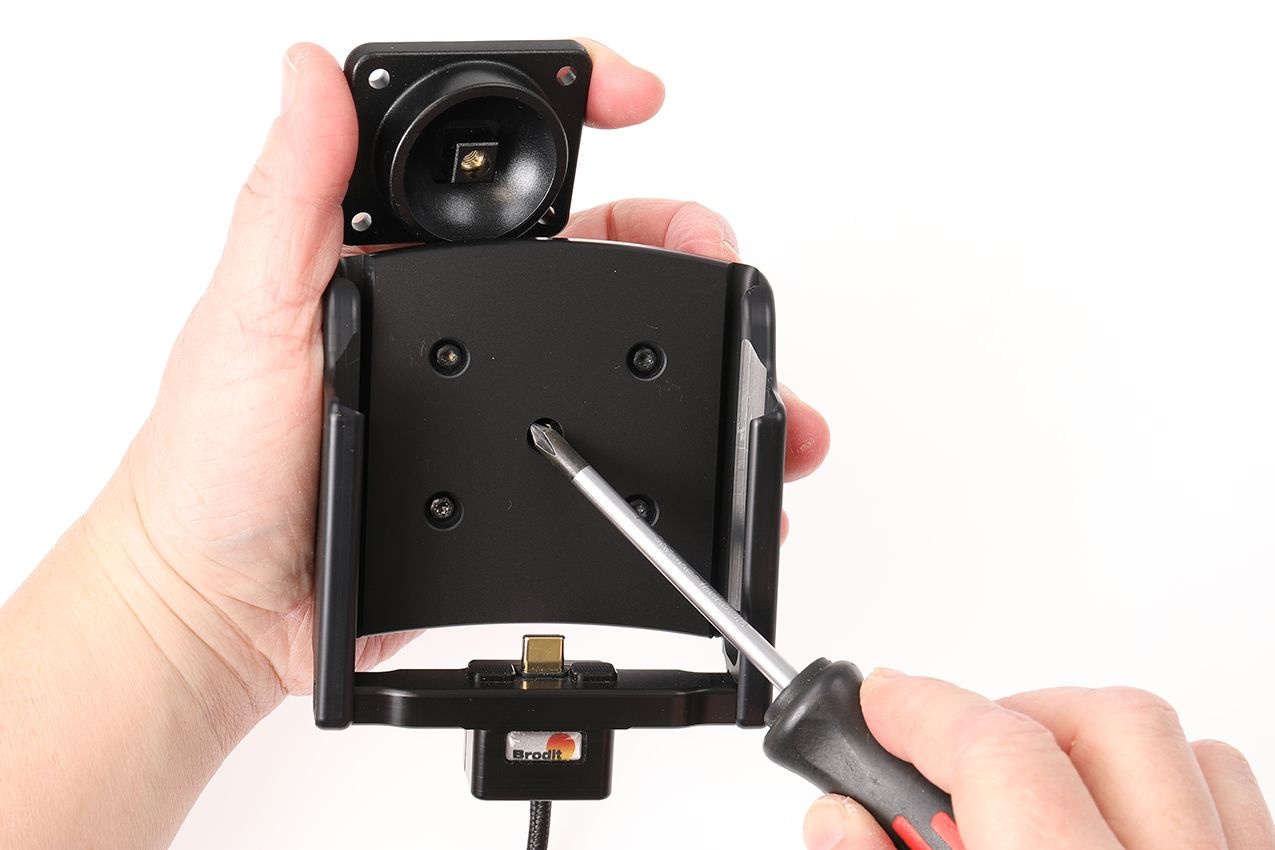 El soporte activo 721411 es compatible específicamente con el soporte activo EM45 de Brodit y se ajusta perfectamente. Ya sea navegación, música o comunicación, con este soporte, lo tendrá todo bajo control.
