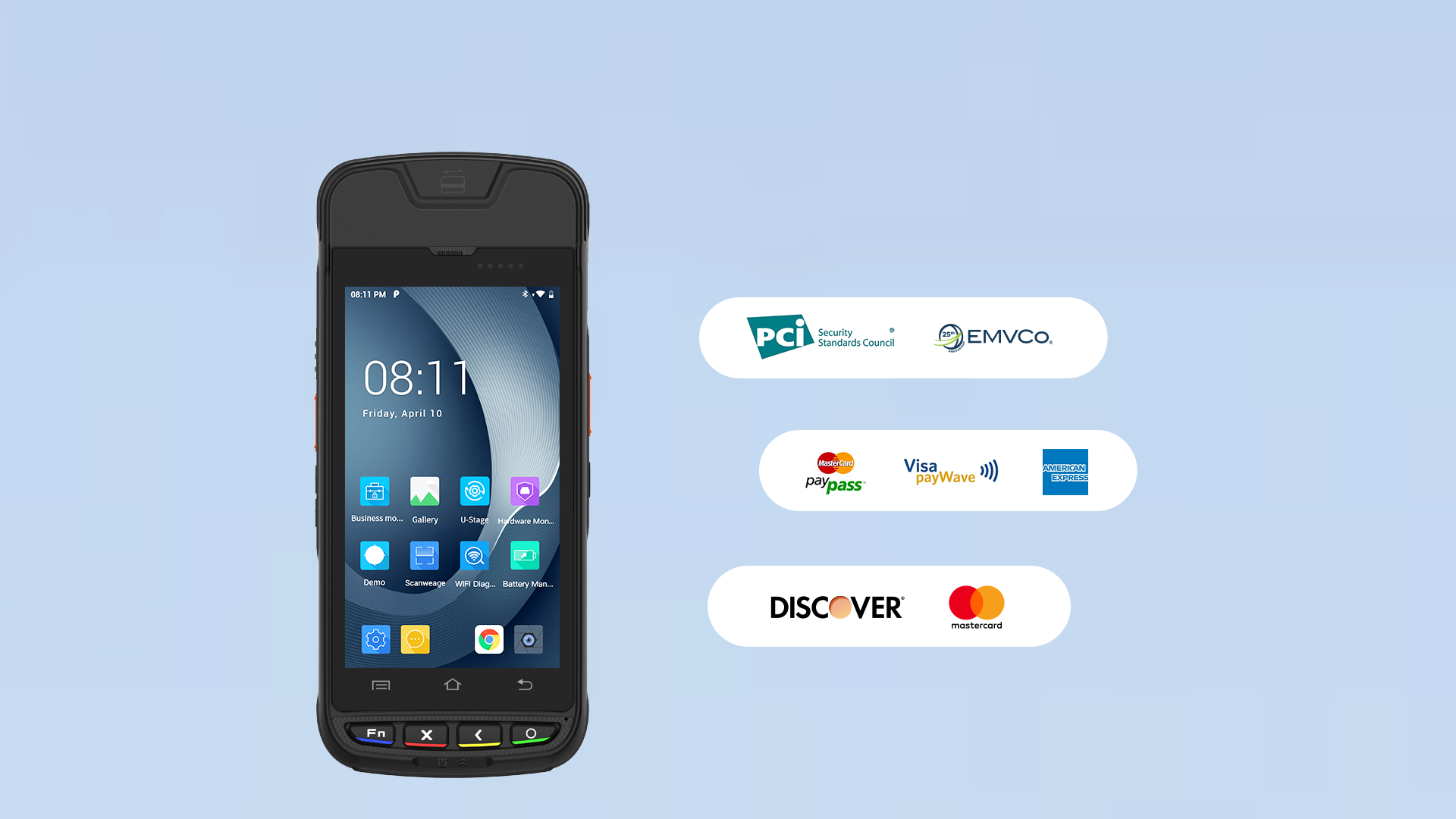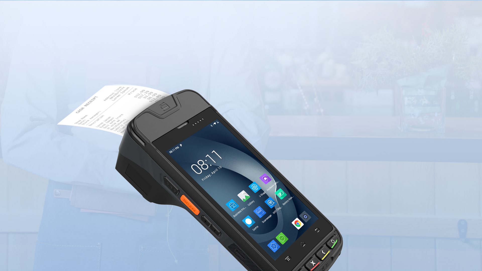 Los pagos se procesan fácilmente con el lector integrado de tarjetas inteligentes, banda magnética y tarjetas sin contacto. Además, el terminal cuenta con un potente lector de códigos de barras 1D/2D, que permite escanear productos con una velocidad increíble. La impresora térmica de recibos de 58 mm con una resolución de impresión de 203 ppp y una ventana de alimentación de papel de 30 mm le garantiza estar siempre listo para imprimir recibos. Con una impresionante batería de 5000 mAh, el terminal puede durar un día entero sin necesidad de recarga. Además, el i9000S-XMFT3WNSEXU está diseñado para resistir caídas de 1,5 metros, lo que garantiza durabilidad y fiabilidad en entornos exigentes. Este terminal es la solución ideal para empresas que buscan una solución de pago robusta y multifuncional.