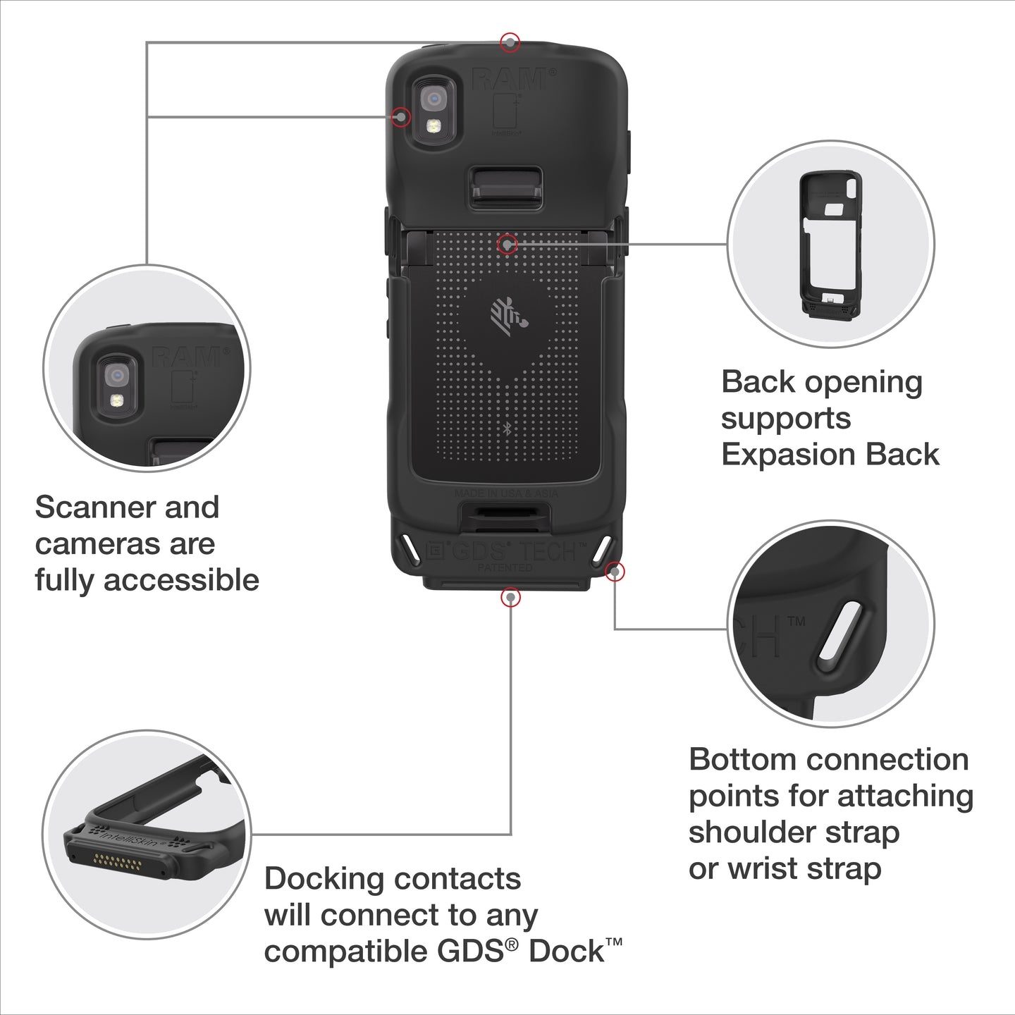 Estuche de carga/protección RAM Mounts IntelliSkin Zebra TC22/27 - GDS Technology
