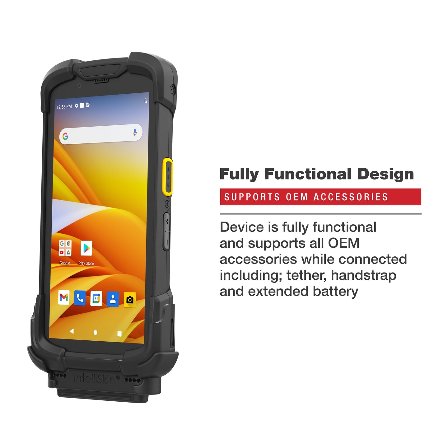 | Camera and buttons can still be used without restriction.additional cutouts and clearances on the back of the intelliskin ensure compatibility with standard and extended battery packs as well as the oem hand strap.the intelliskin next gen protective sleeve for the zebra ec5x is compatible with a variety of usb 3.1 supported gds docks and accessories.product features ram mounts ram-gds-skin-ze35-ng | Compatible with standard and extended battery packs and OEM hand strapContinued access to scanner |